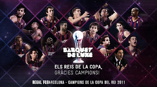 NotíciaCampions de la copa del rei de bàsquet 2011!! Posted on 14 febrer 2011 by Penya Blaugrana dIgualada Per segon any consecutiu, el FC Barcelona s’ha proclamat campió de la copa del rei de bàsquet. En una final molt igualada, contra el Real Madrid i en terreny contrari, el Barça ha guanyat merescudament aquest trofeu. Enhorabona campions! Anem al Teatre: “Ara estem d’acord, estem d’acord”. Final de la Primera volta i la Penya segueix líder.