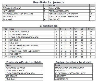 Acabada la fase prèvia de classificació a la lligueta de Futbol7, l’equip de la Penya Blaugrana d’Igualada s’ha classificat per poder jugar a la primera divisó del torneig d’Igualada. Sense haver perdut cap partit, i com a màxims golejadors de la fase classificatòria, l’equip de la Penya ha acabat en un tercer lloc molt disputat, amb 21 punts. Per davant només ha tingut l’equip Achicando Espacios, campió de la fase amb 25 punts, i Els Molins Pobla 7, amb 22 punts i segon classificat.