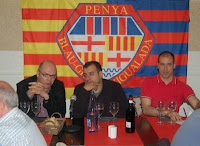 Aquest dijous al vespre, una cinquantena de penyistes han gaudit de les explicacions del periodista esportiu Ricard Torquemada, col·laborador de la TdP. Després d’un bon sopar, i moderat pel periodista Jordi Quintana, s’ha obert un participat i interessant debat al voltant dels temes de màxima actualitat blaugrana. Prèviament, en Ricard Torquemada ha fet cinc cèntims sobre el seu llibre “Fórmula Barça”, que recull molts anàlisis tècnics del Barça de Josep Guardiola. Durant el debat, s’ha parlat del relleu a la banqueta del Barça, de les aptituds d’en Tito Vilanova, de com pot ser i com hauria de ser la plantilla blaugrana per a la propera temporada, i un llarg etcètera de temes, que el convidat ha anat tractant d’una forma molt amena i planera. El públic assistent no ha deixat passar l’oportunitat de comprar el seu llibre i de fer-lo signar pel propi Ricard Torquemada, que pacientment ha anat redactant totes i cadascuna de les dedicatòries sol·licitades. Una gran vetllada.