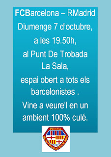 La Penya Blaugrana d’Igualada posa a l’abast dels seus associats i amics el Punt De Trobada del Mercantil-La Sala per al seguiment del Barça – Madrid del proper diumenge dia 7 d’octubre, a les 19.50h.