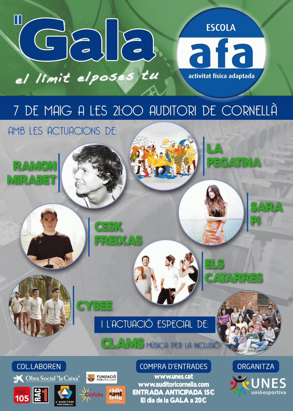 Aquesta Gala es realitzarà el dimecres dia 7 de maig a l’Auditori de Cornellà, i comptarà amb les col·laboracions de La Pegatina, Cesk Freixas, Ramon Mirabet, Sara Pi, Els Catarres, Cybee i Clams, i és una crida a la inclusió dels discapacitats en la nostra societat.